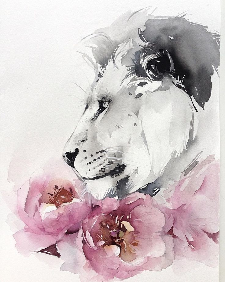 ![Наталья Каданцева акварель львы]()