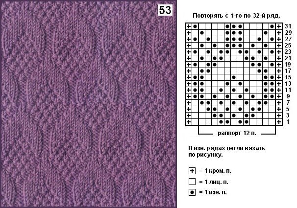 ![Рельефные узоры спицами с описанием и схемами для свитеров]()