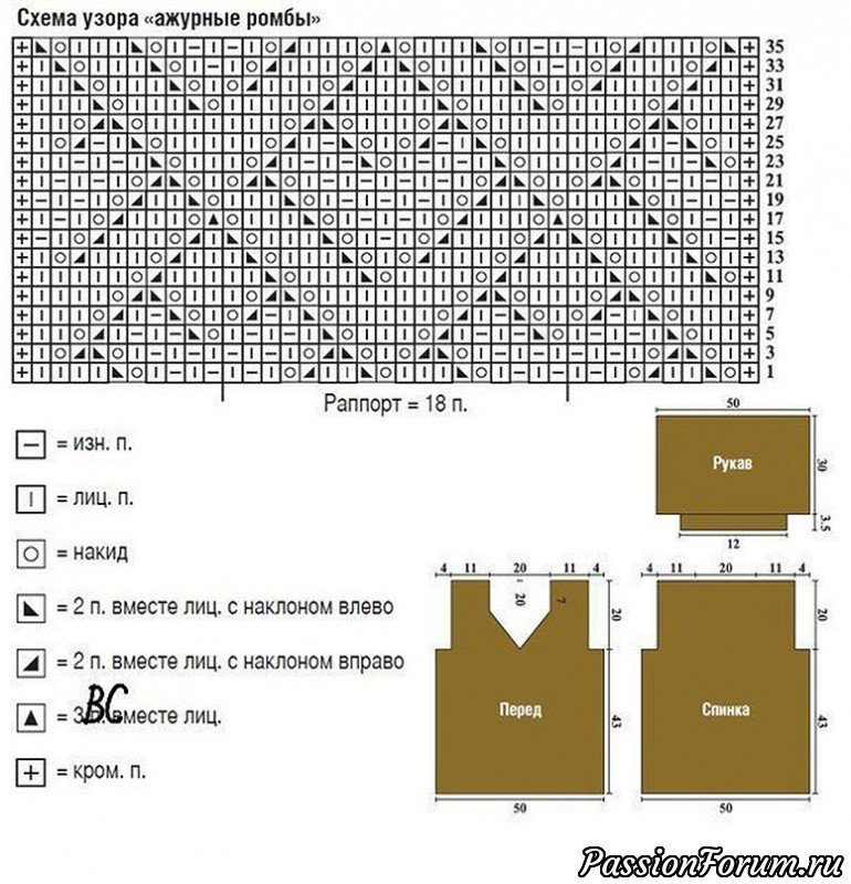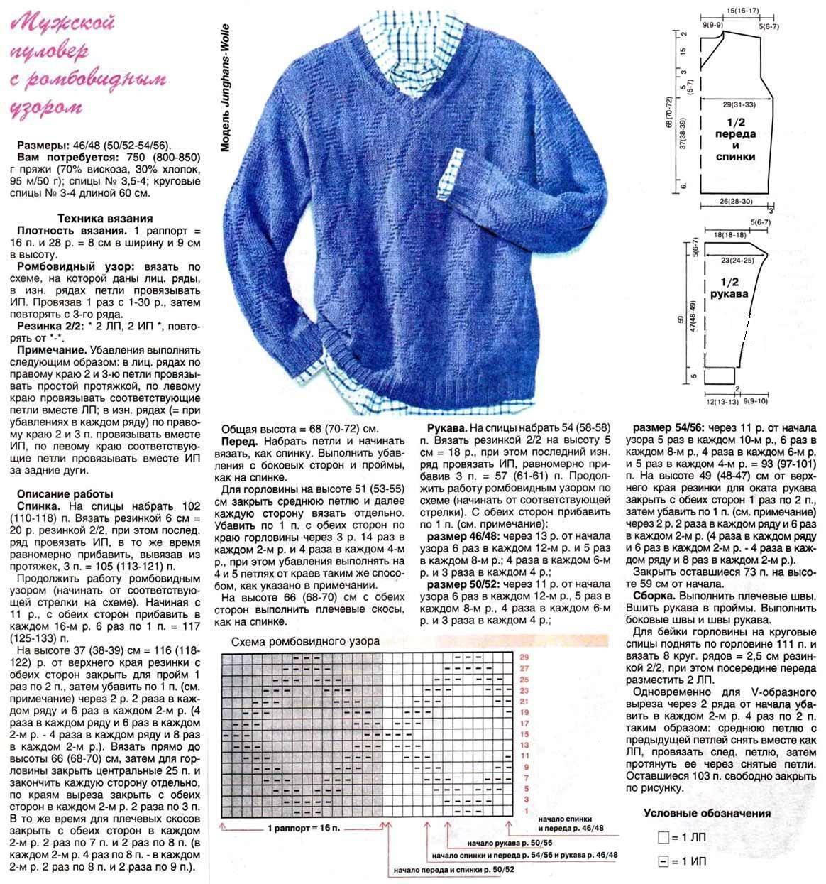 ![Пуловер с узором ромбы спицами схемы и описание]()