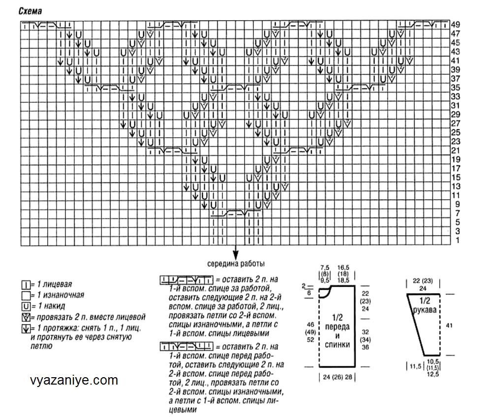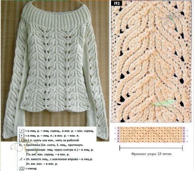 ![Пуловер женский ажурный спицами схемы с описанием]()