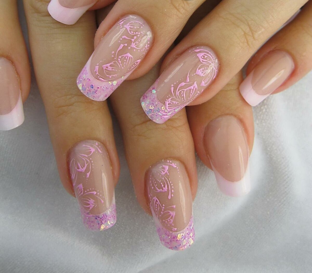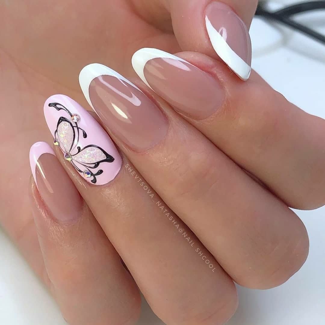 Маникюр френч с бабочками