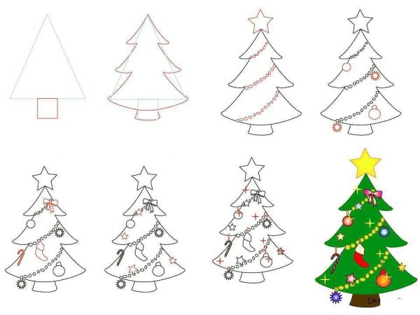 ![Новогодняя елка рисунок]()