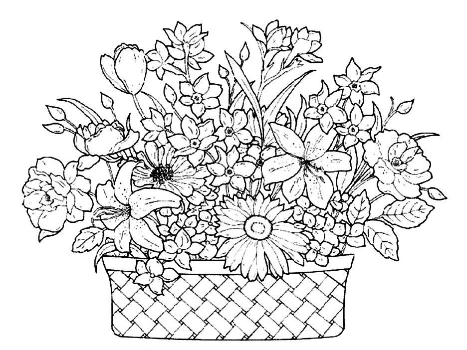 Раскраска корзина с цветами