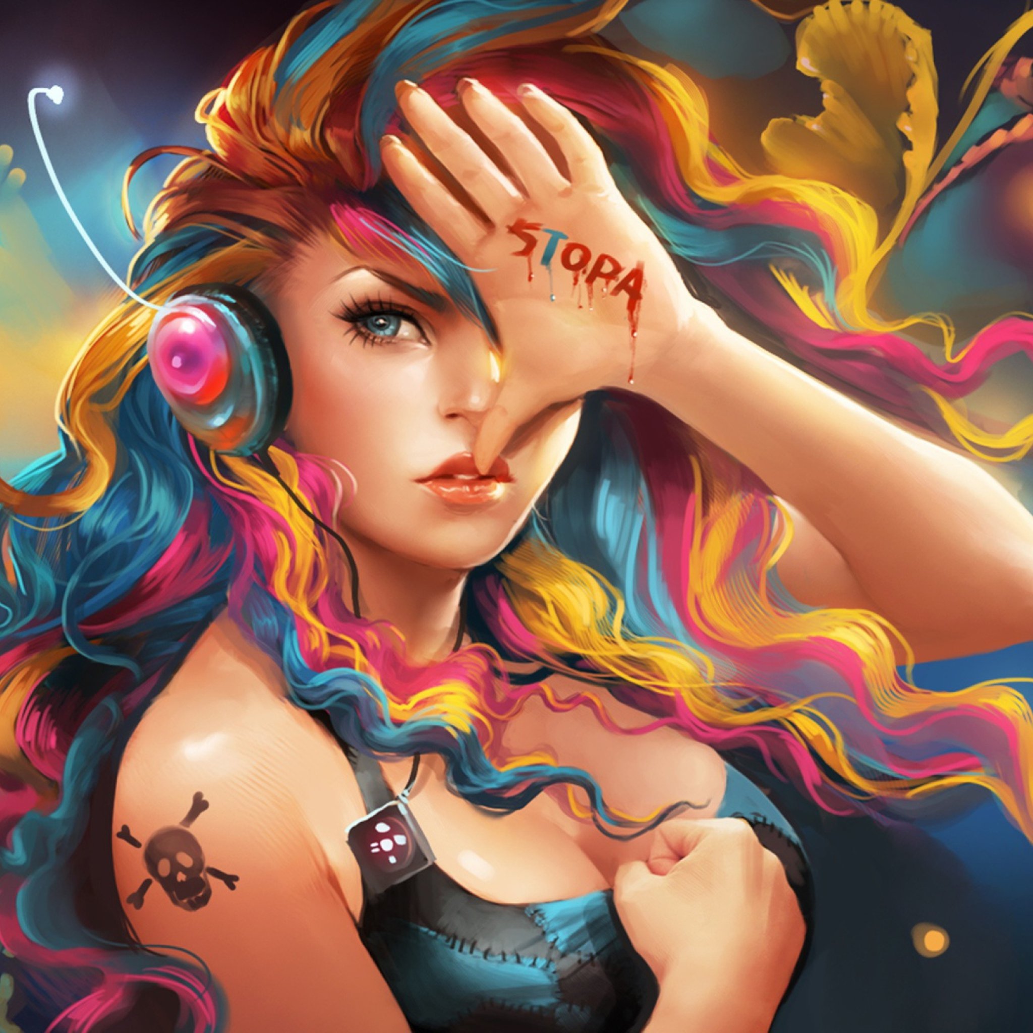 ![Красочные арты девушек]()