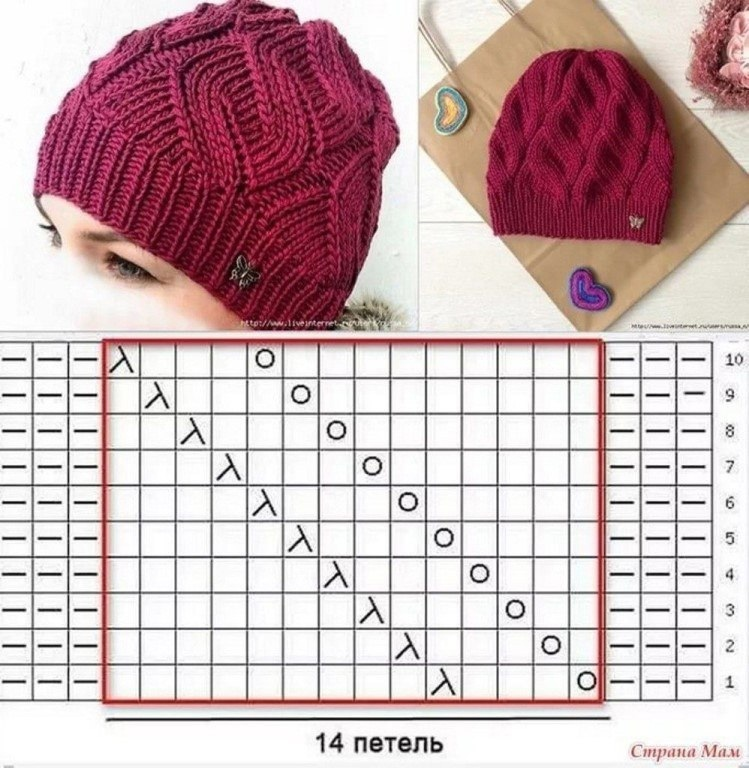 Узоры для шапок спицами со схемами