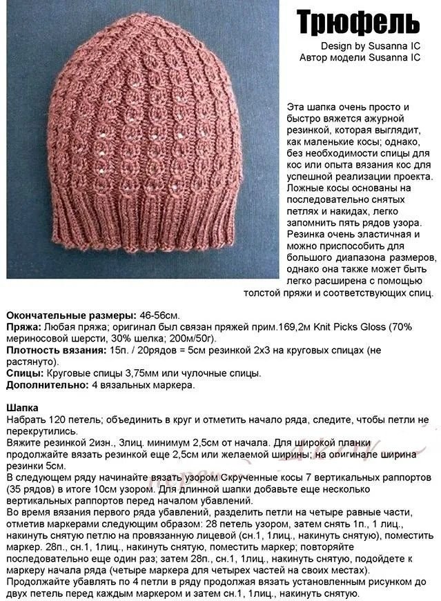 Вязание шапок спицами трюфель
