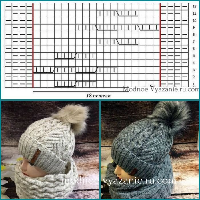 ![Вязание шапки и снуда спицами со схемами]()