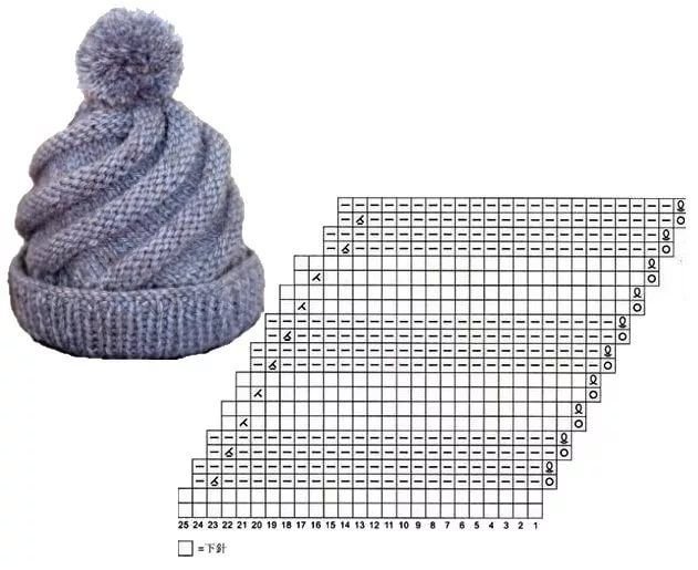 ![Схема вязания шапки спицами]()