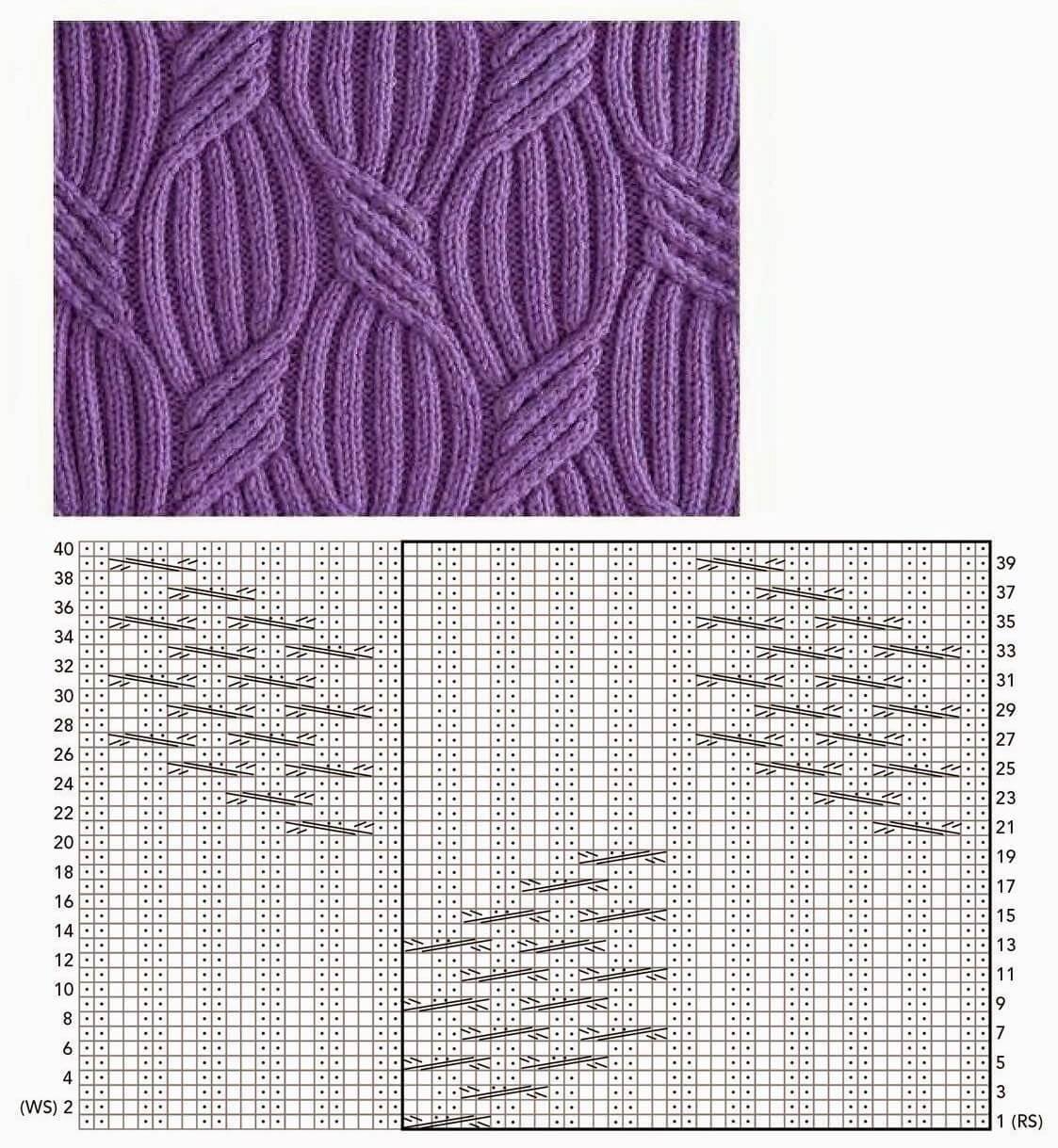 Узоры из лицевых и изнаночных петель для вязания спицами со схемами