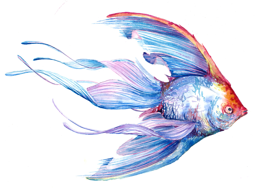 Декоративная рыба акварель