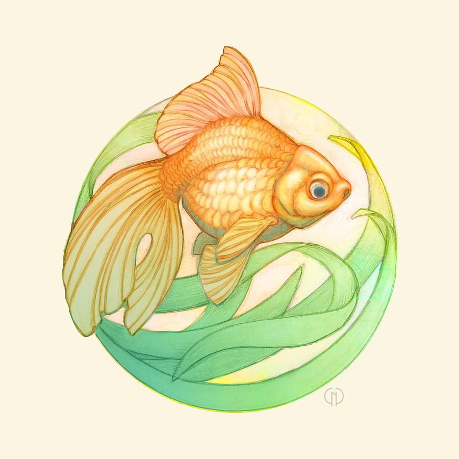 ![Золотая рыбка гуашью]()