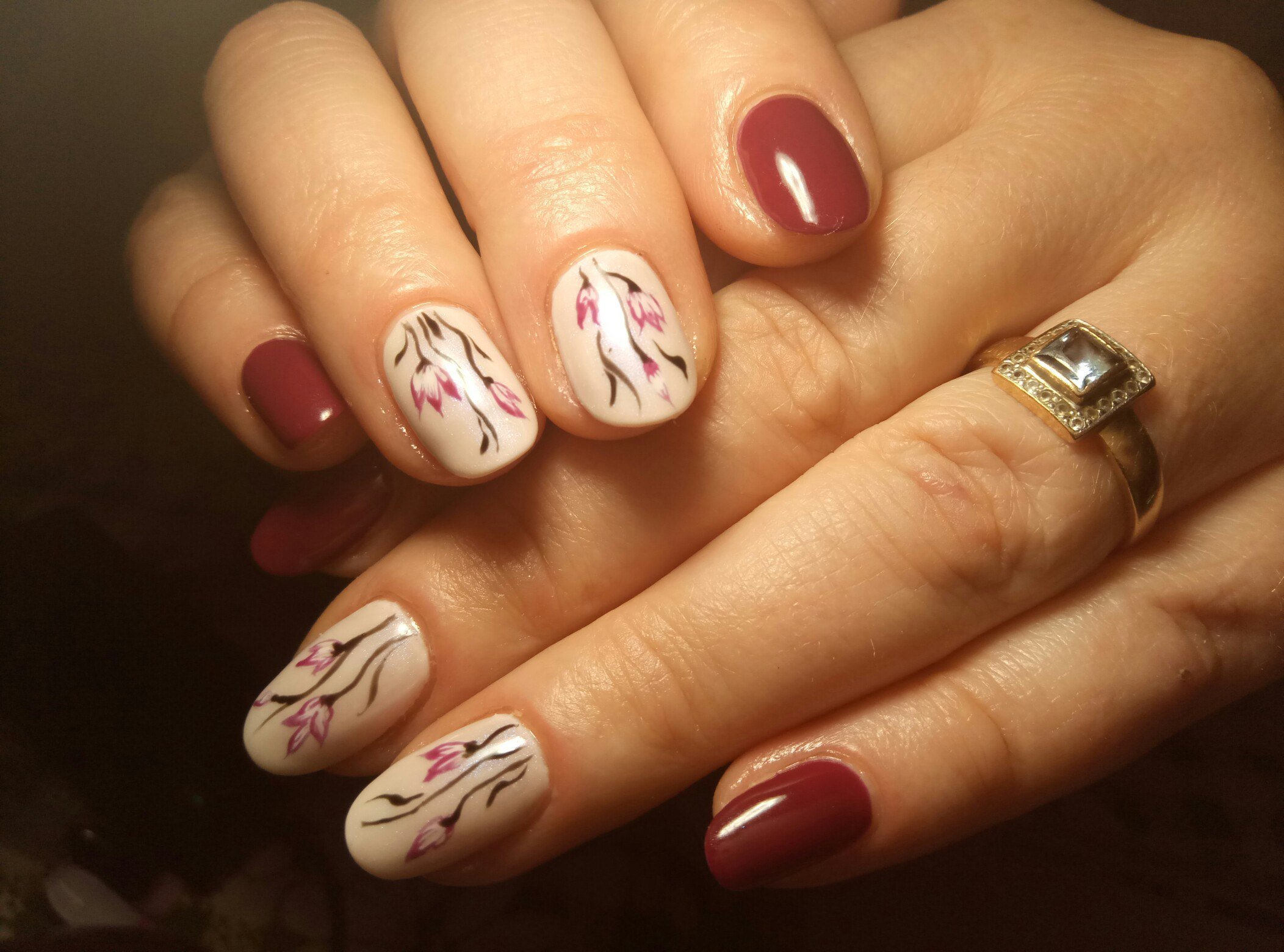 Вишнёвый бордовый маникюр на короткие ногти 2023