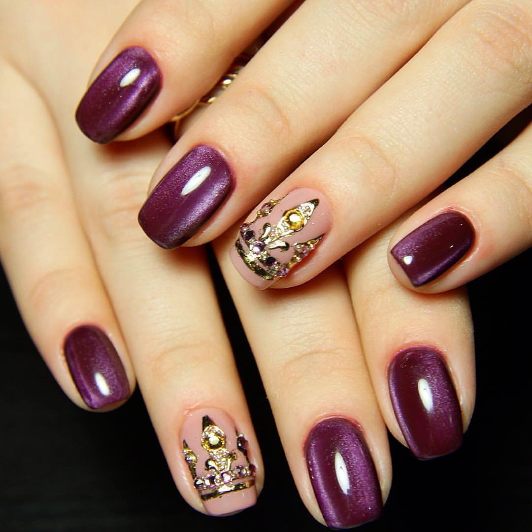 ![Вишнёвый бордовый маникюр на короткие ногти 2023]()