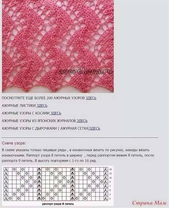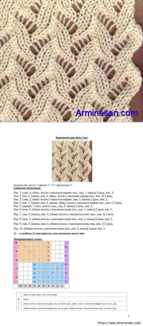 Схема вязания ажурных узоров спицами с описанием и схемами