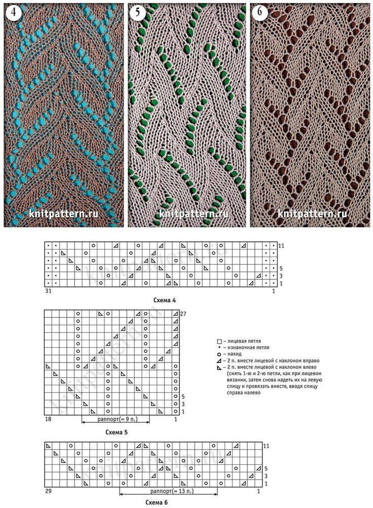 ![Схема вязания ажурных узоров спицами с описанием и схемами]()