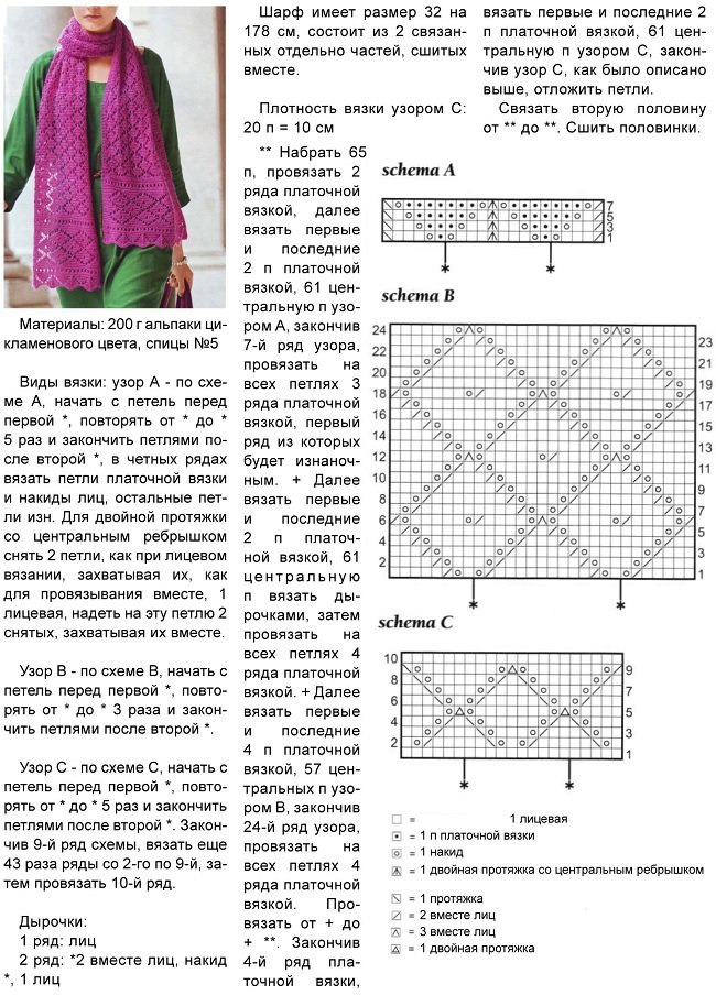 Ажурные шарфики спицами со схемами
