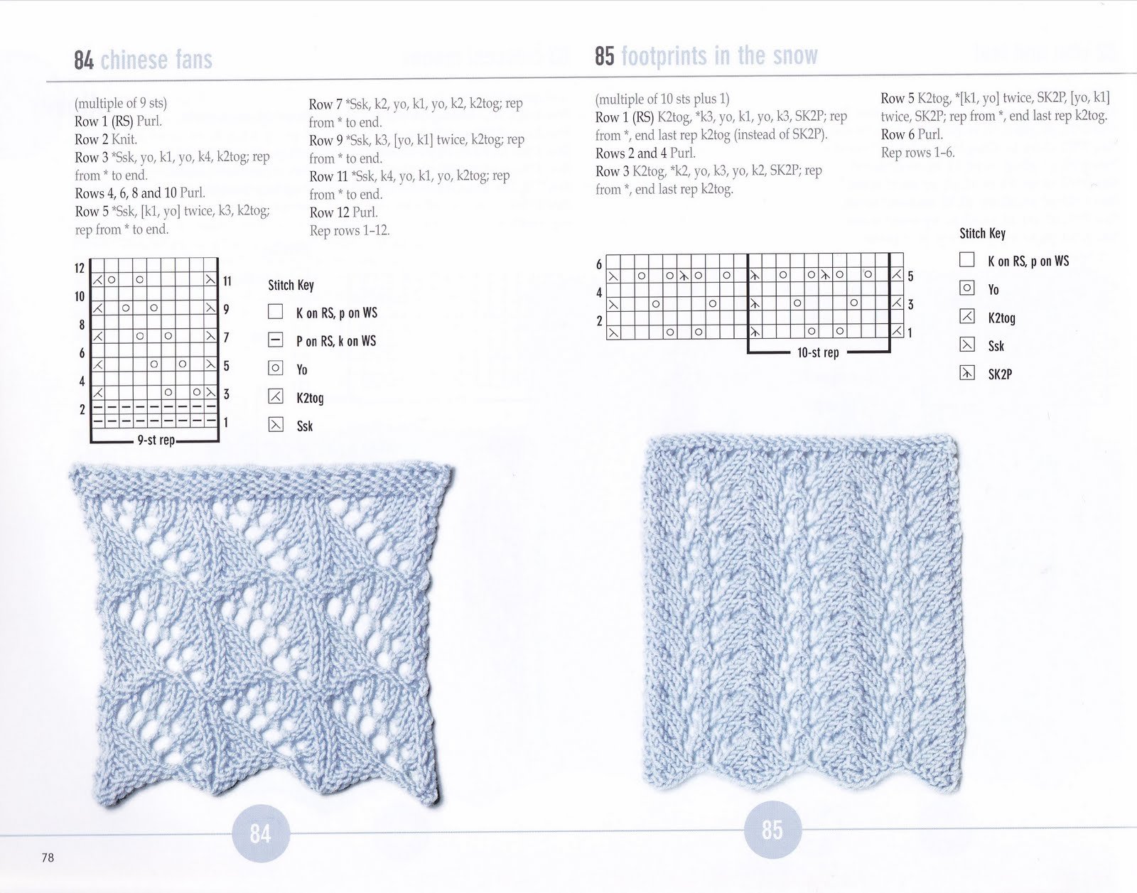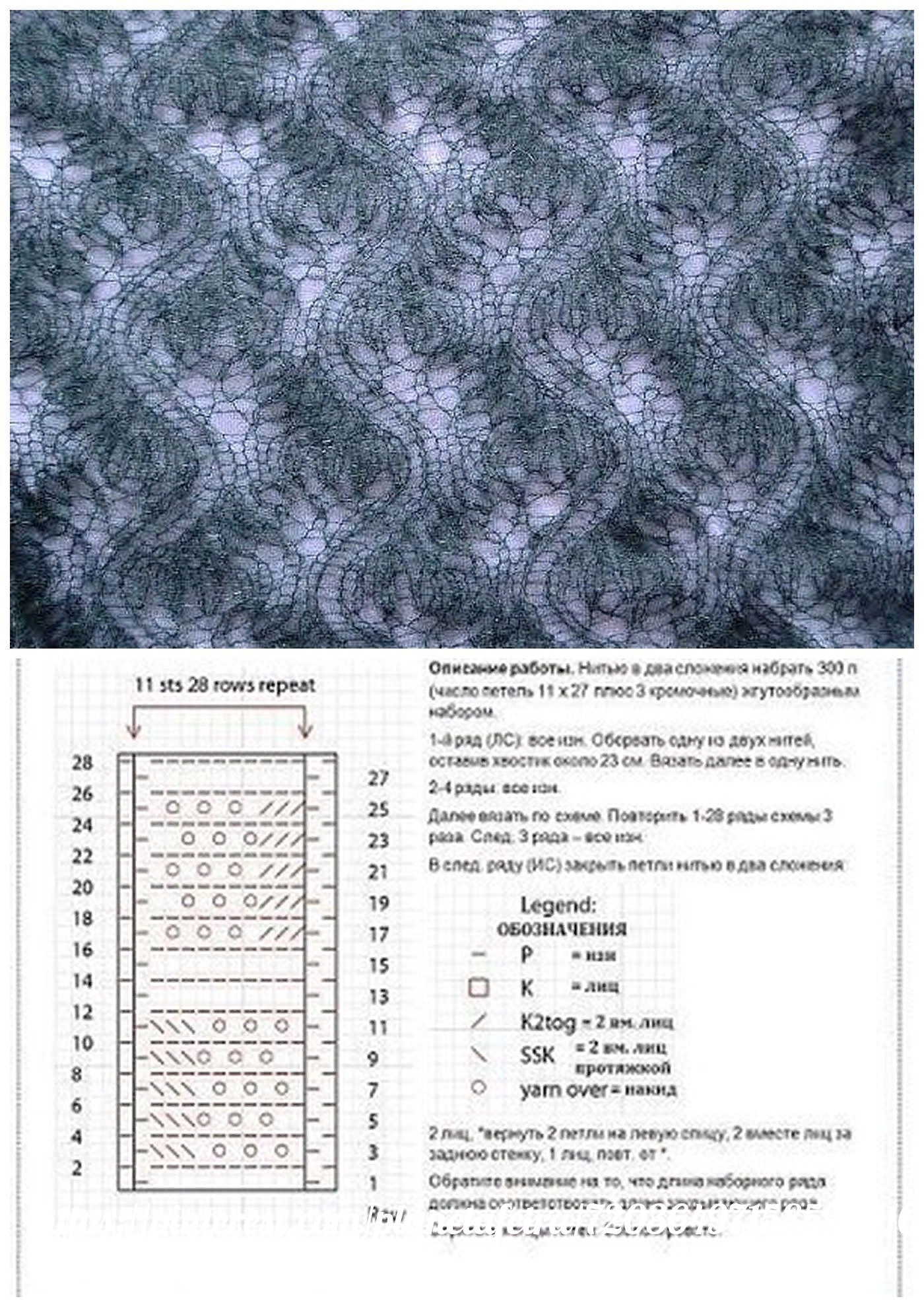 Ажурные узоры спицами со схемами для палантинов из мохера