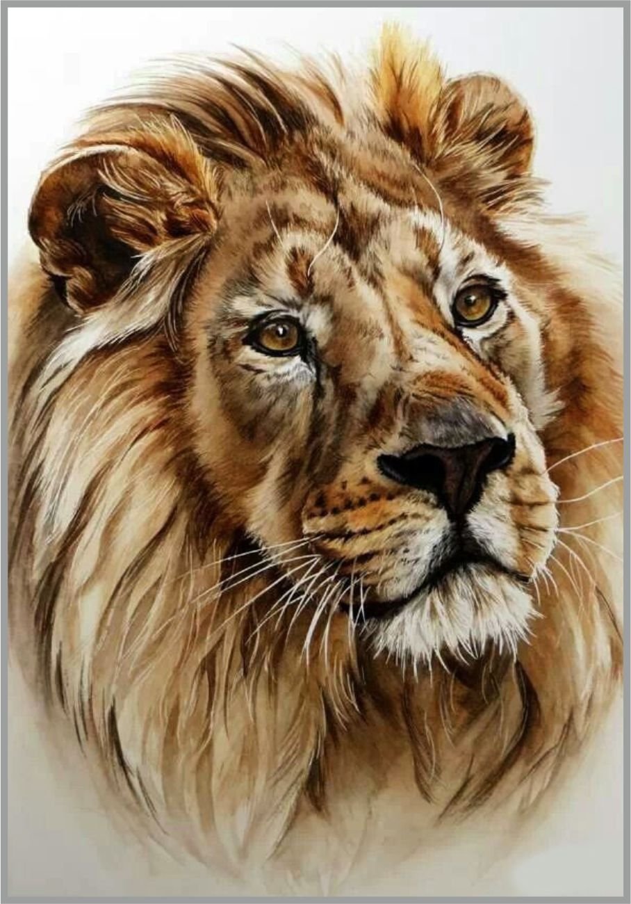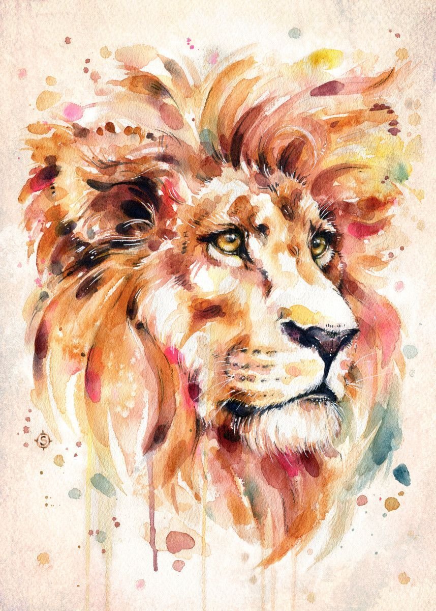 ![Лев акварель]()