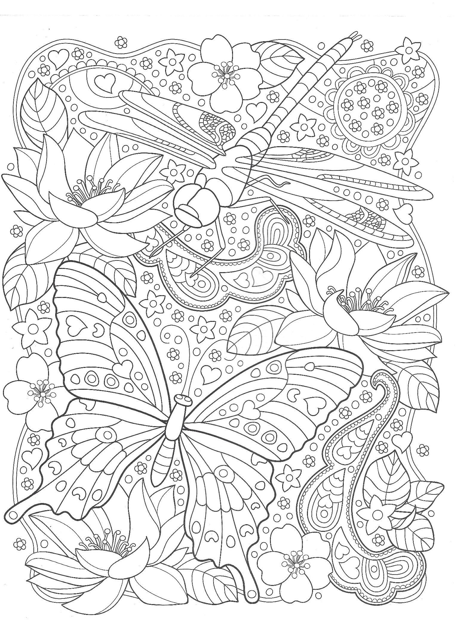 Раскраски цветов и бабочек