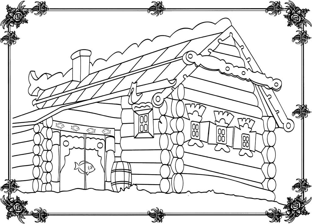 Русская изба раскраска