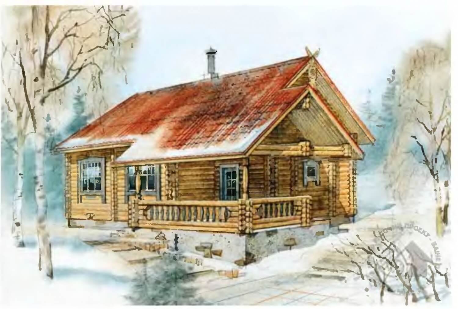 ![Бревенчатый дом рисунок]()