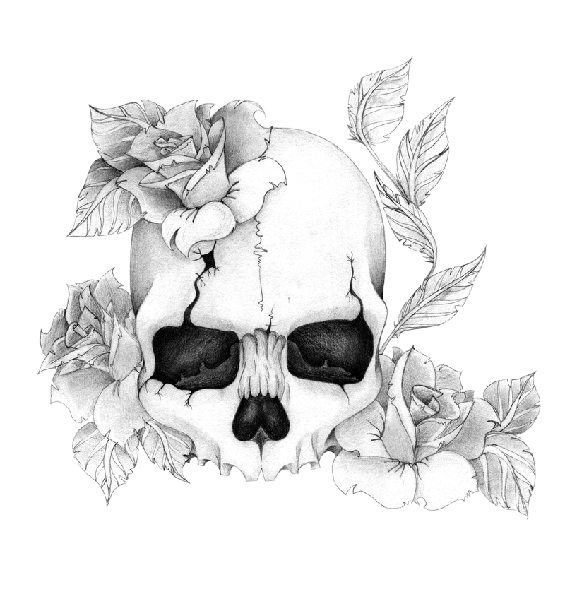 Рисунки карандашом черепа с розами