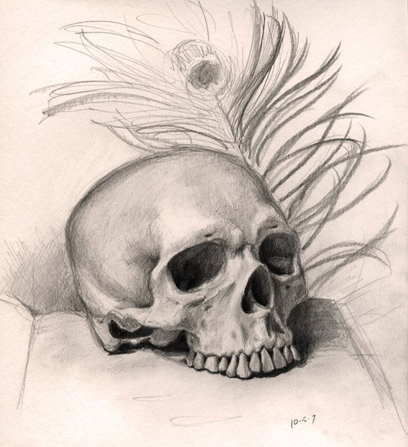 ![Наброски черепа карандашом]()