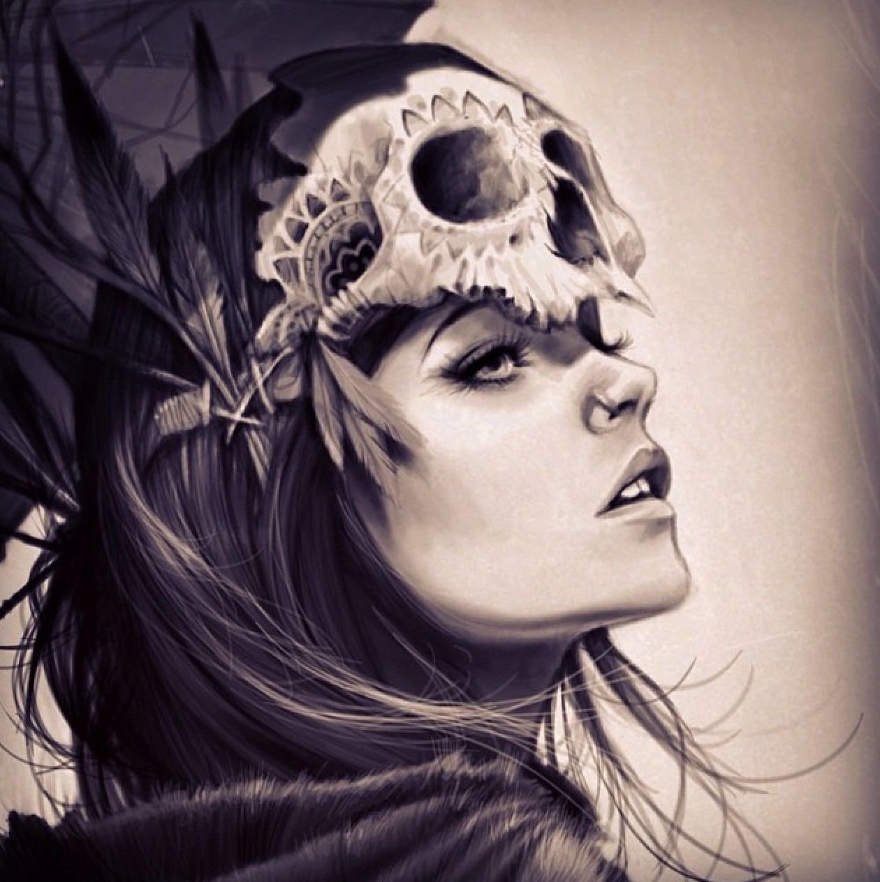 ![Красивый череп эскиз]()