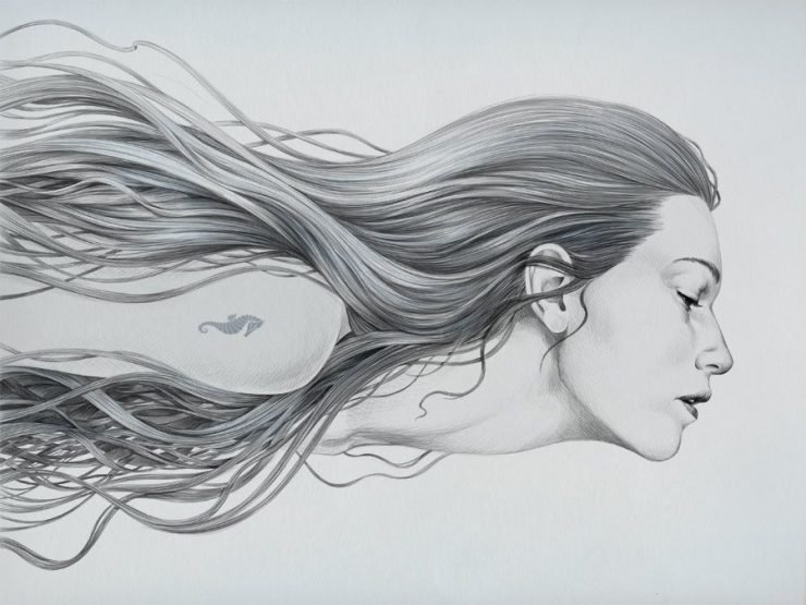 ![Реалистичные волосы карандашом]()