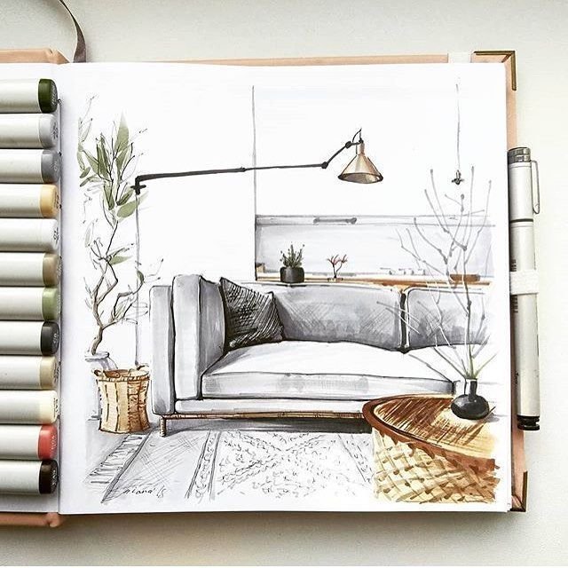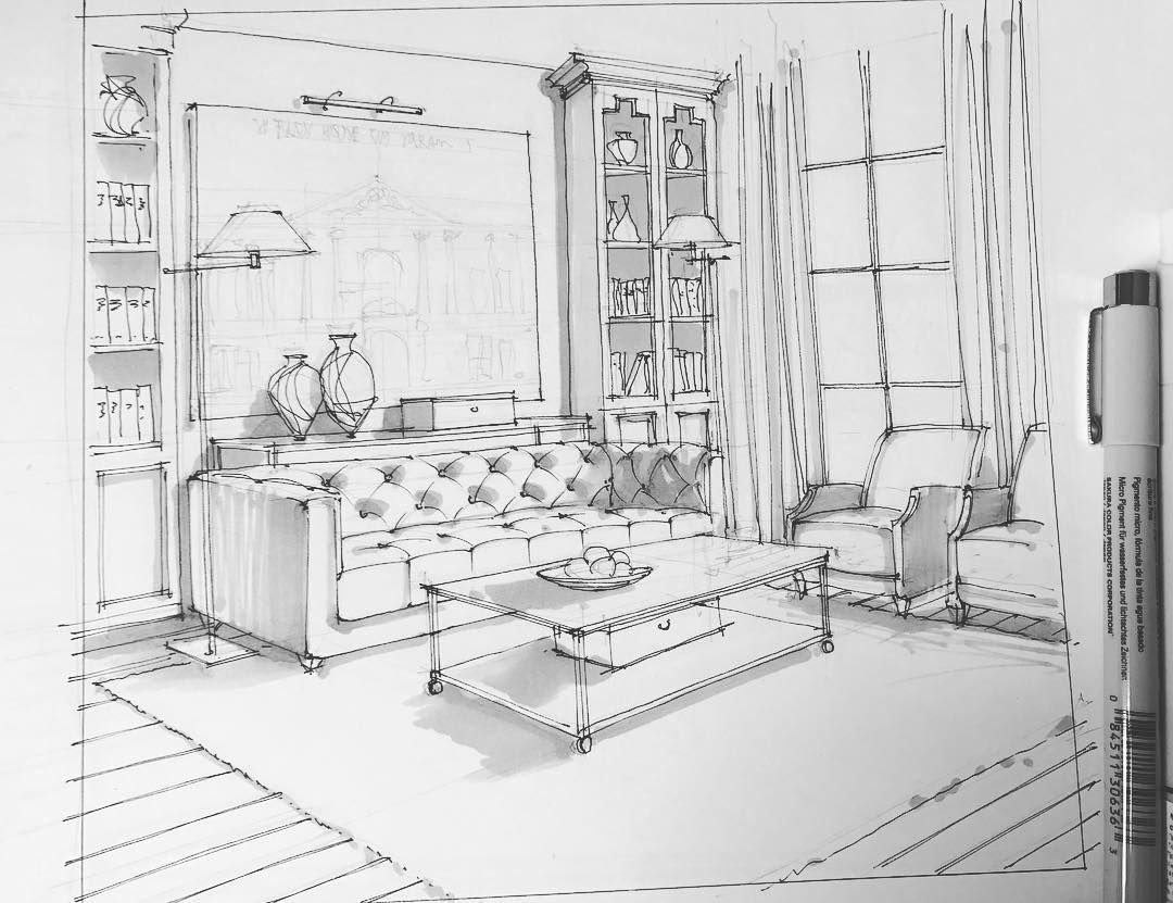 ![Интерьер эскиз графический]()