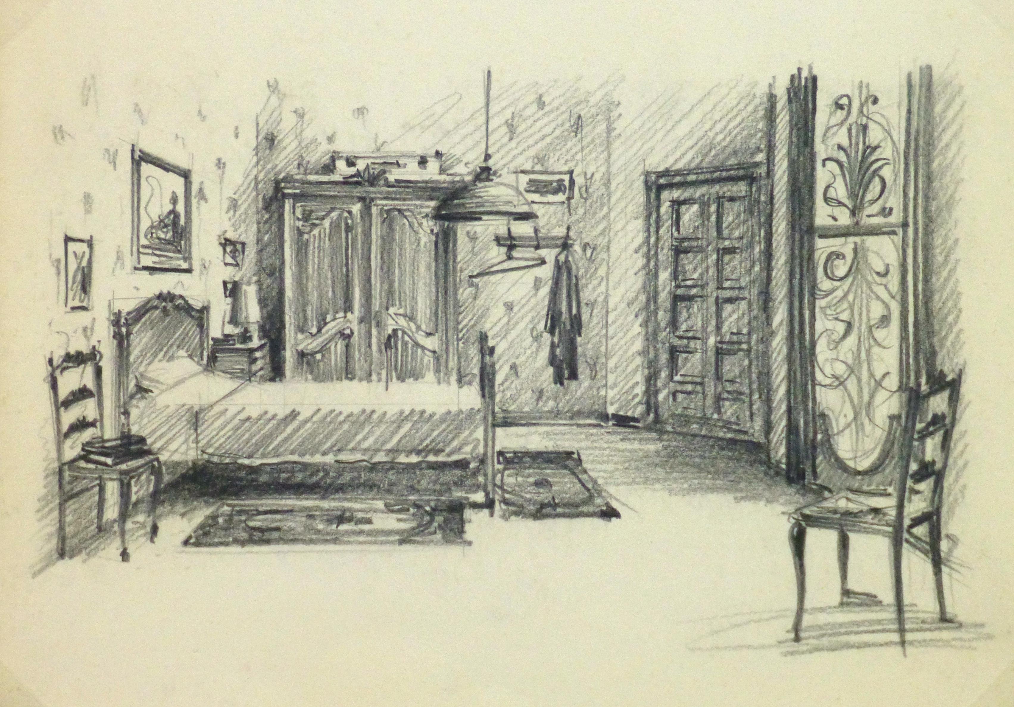 ![Рисунок комнаты карандашом]()