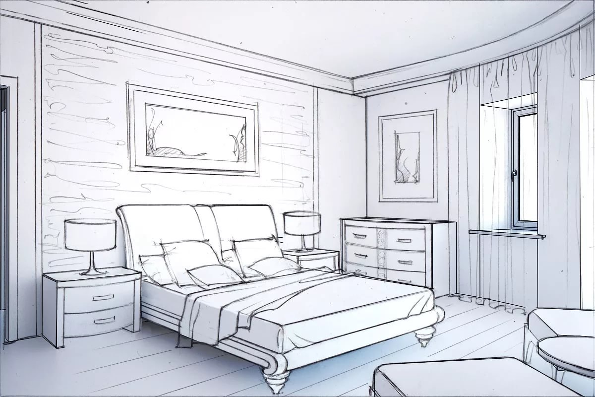 Эскиз интерьера спальни