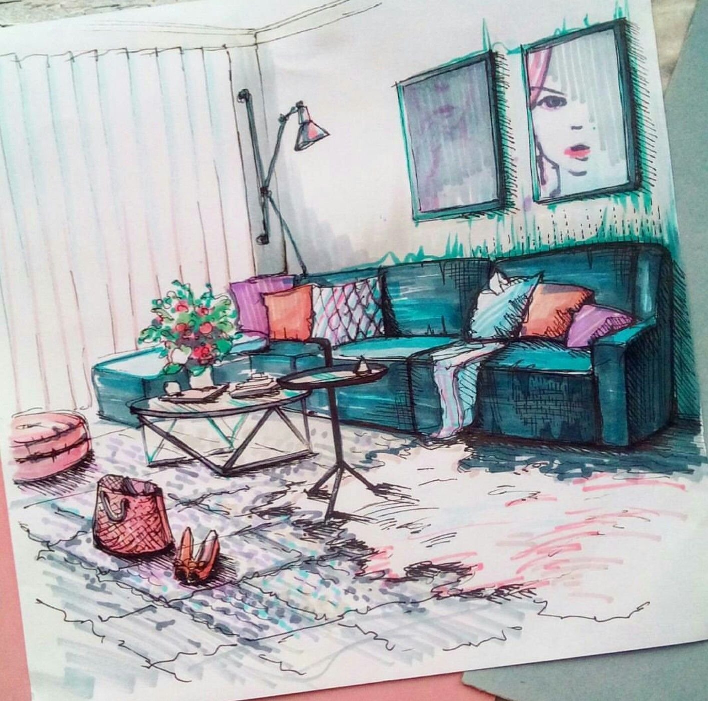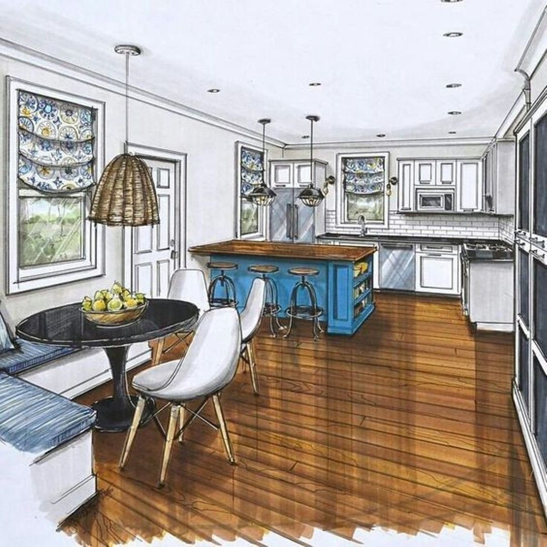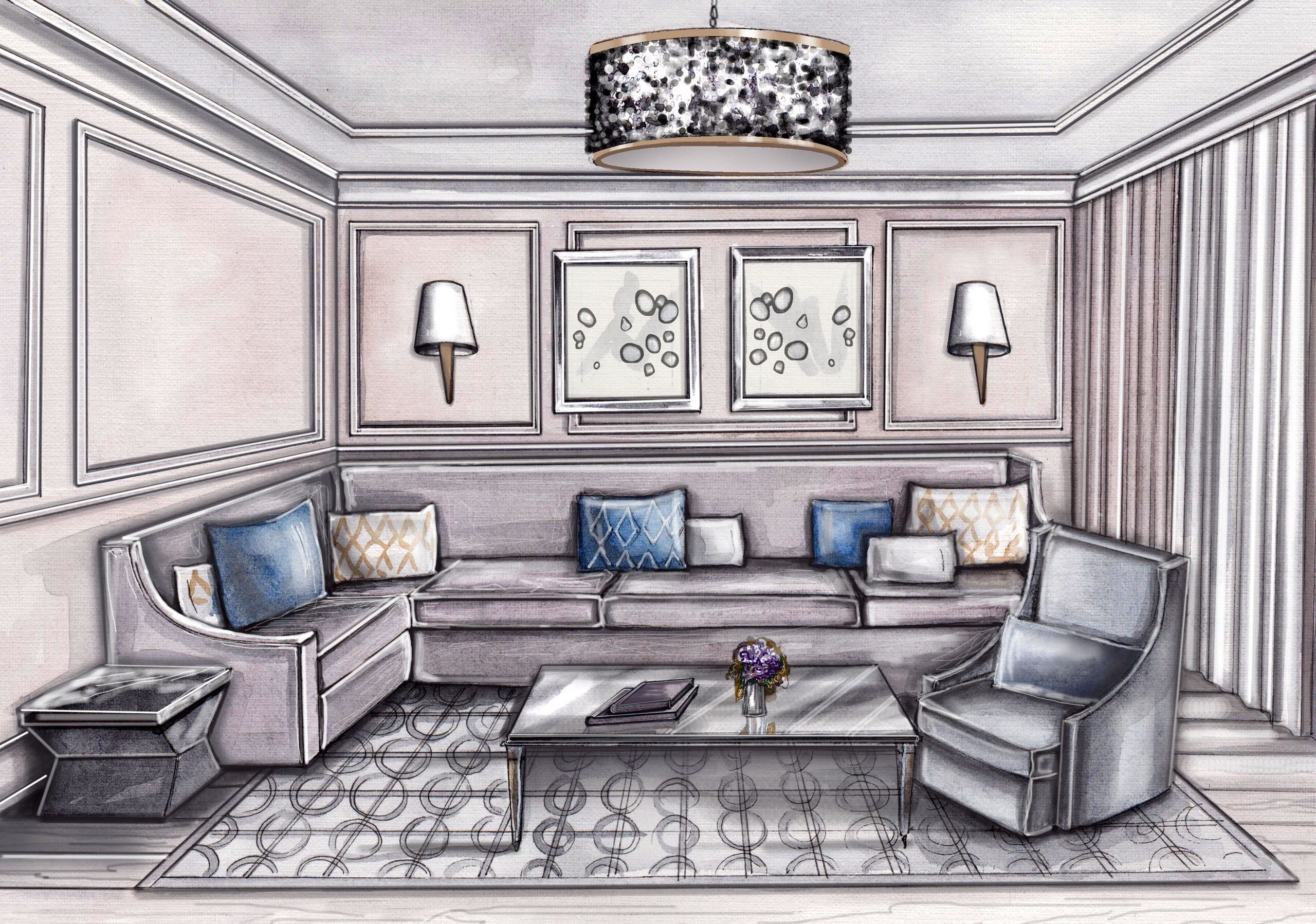 ![Дизайнерские скетчи интерьера]()