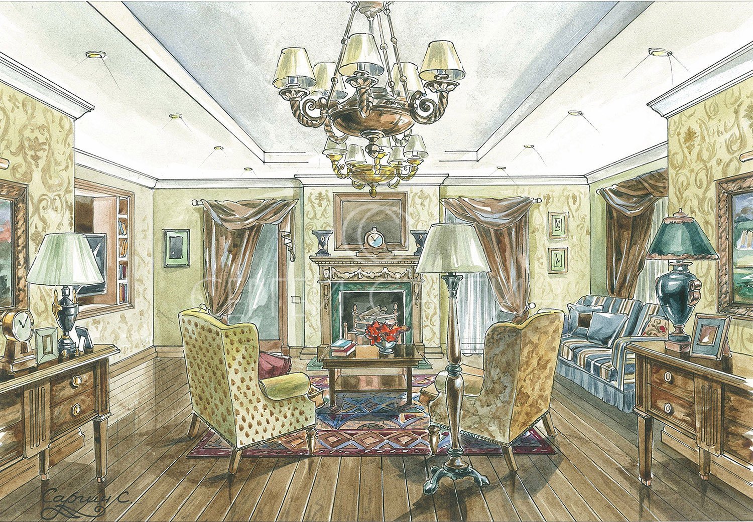Эскиз интерьера гостиной