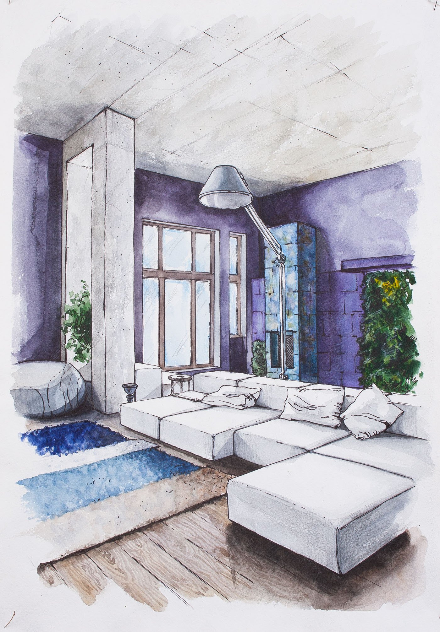 ![Акварельные эскизы интерьеров]()