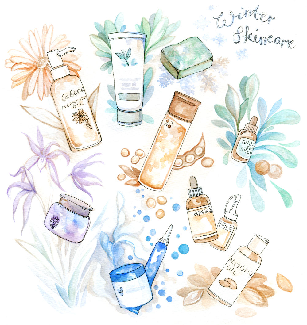 ![Косметика нарисованная акварелью]()