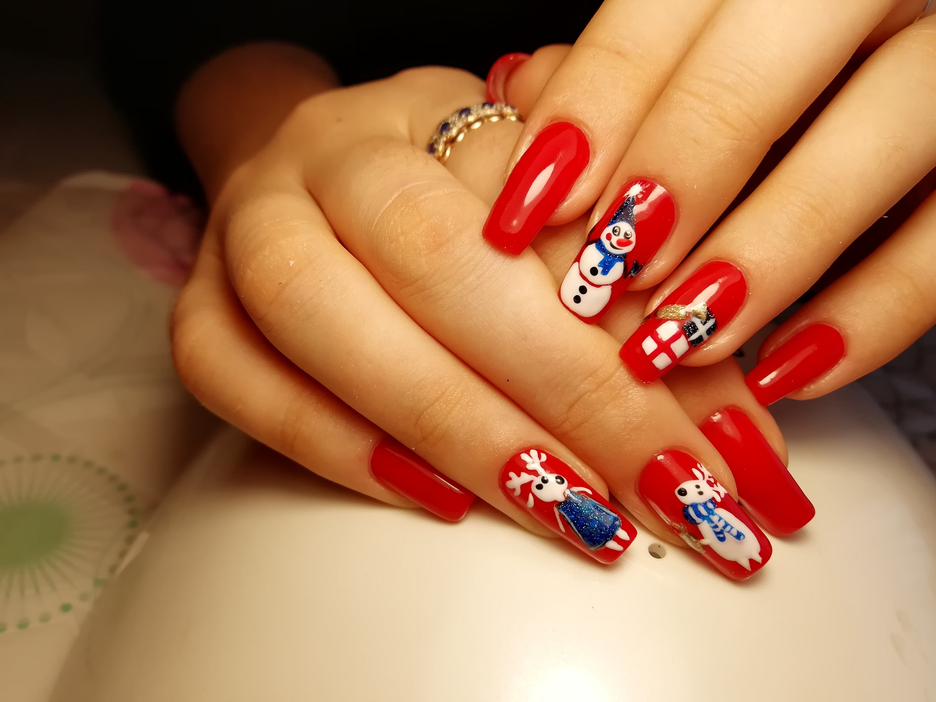 Новогодние ногти красные квадратные