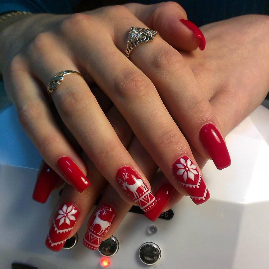 Красно белый маникюр на острые ногти