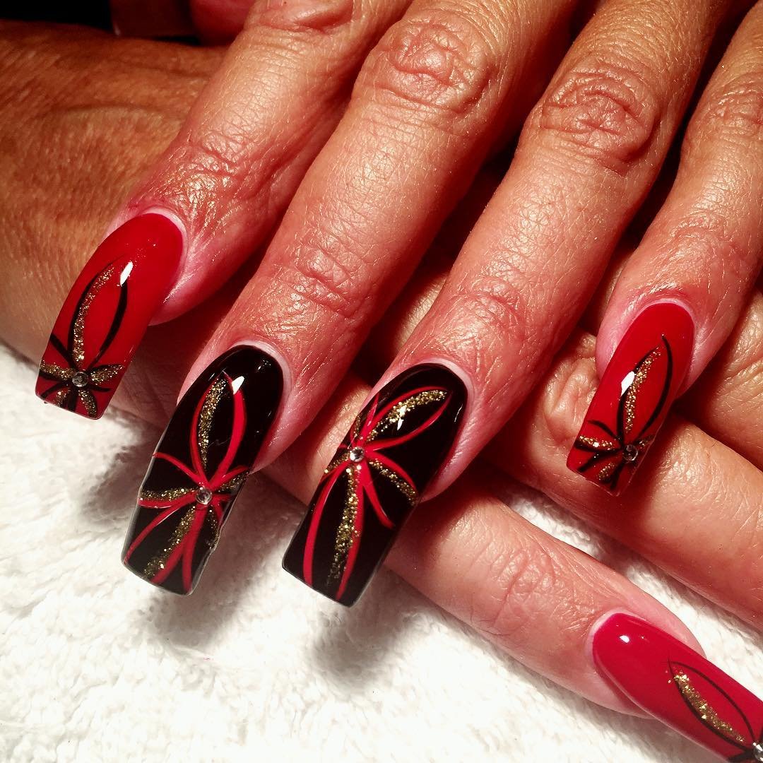 Ногти красные с черным