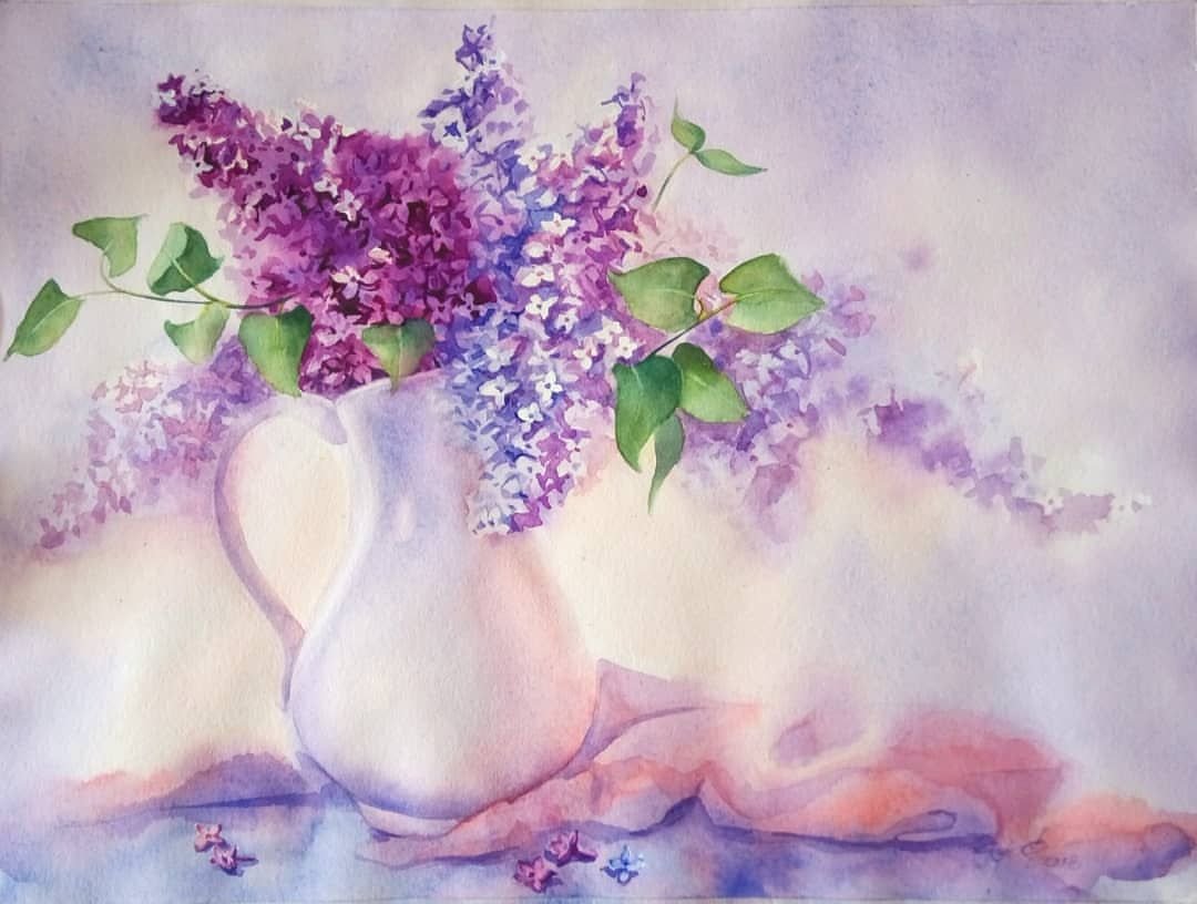 ![Стелла Аристакесова акварель сирень]()