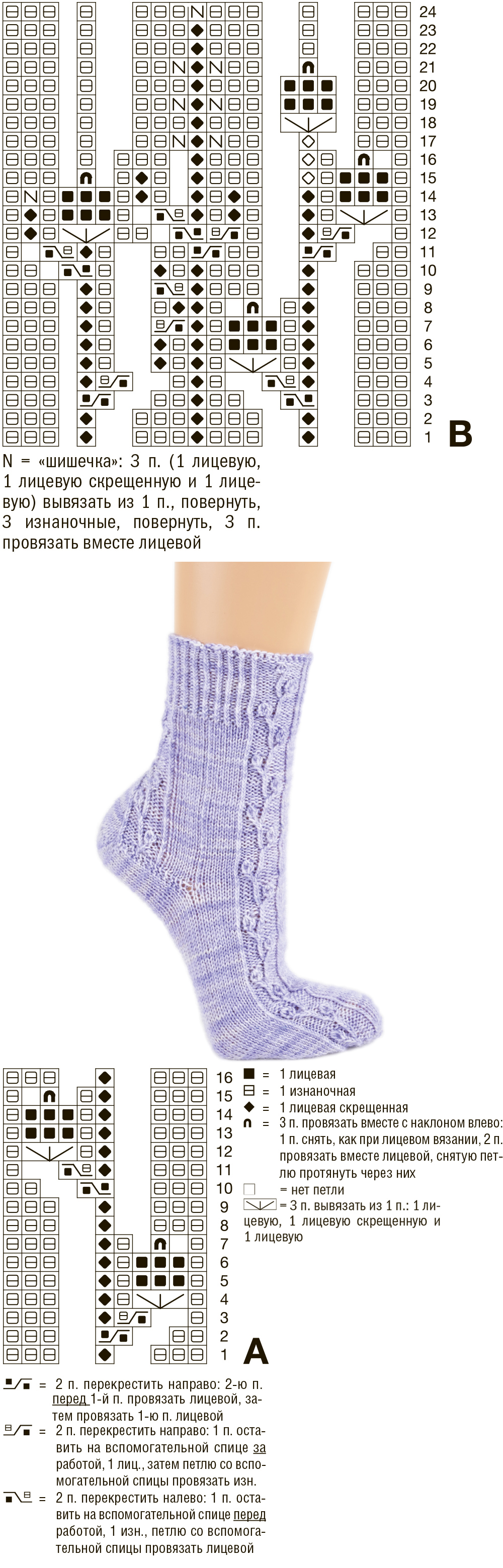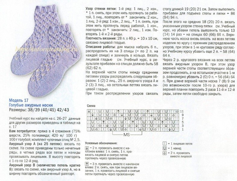 Вязание ажурных носков спицами с описанием и схемами