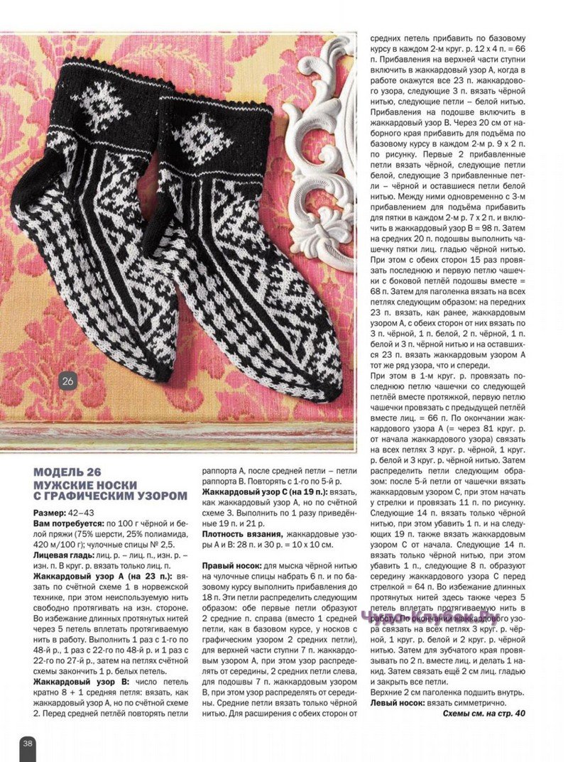 Жаккард для мужских носков спицами схемы