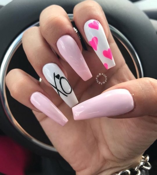 ![Розовый маникюр с сердечками]()
