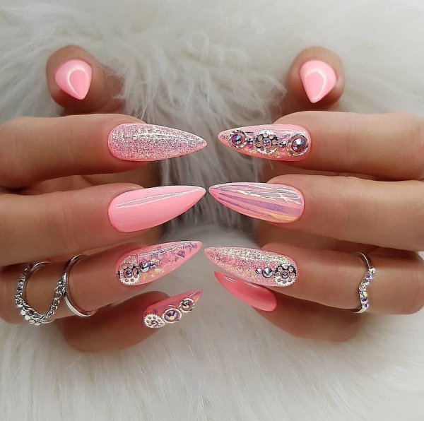 Розовые ногти острые
