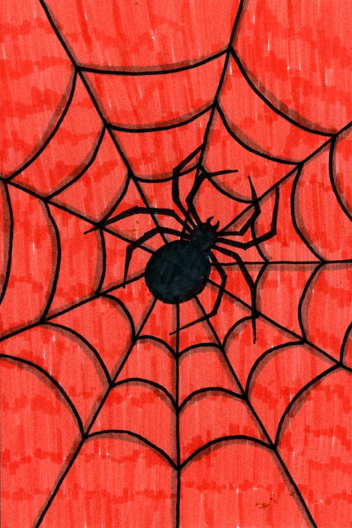 Поэтапное рисование паутины и паука