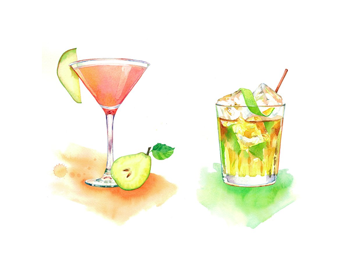 ![Акварельные скетчи коктейли]()