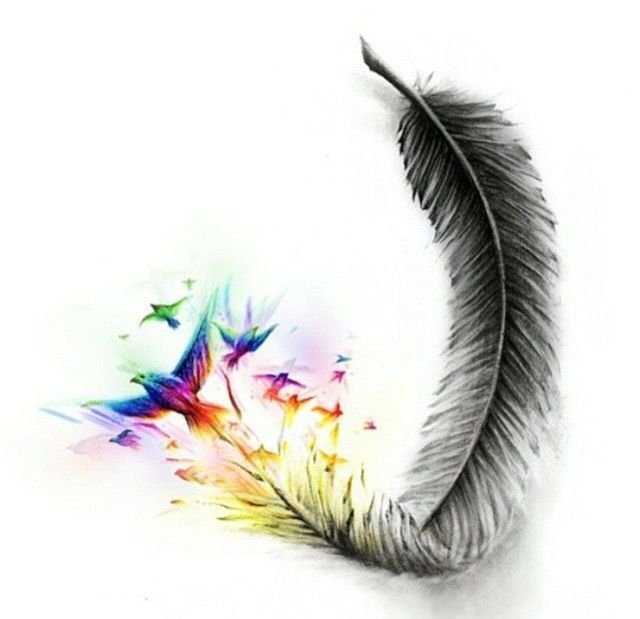 ![Тату перо цветное эскизы]()