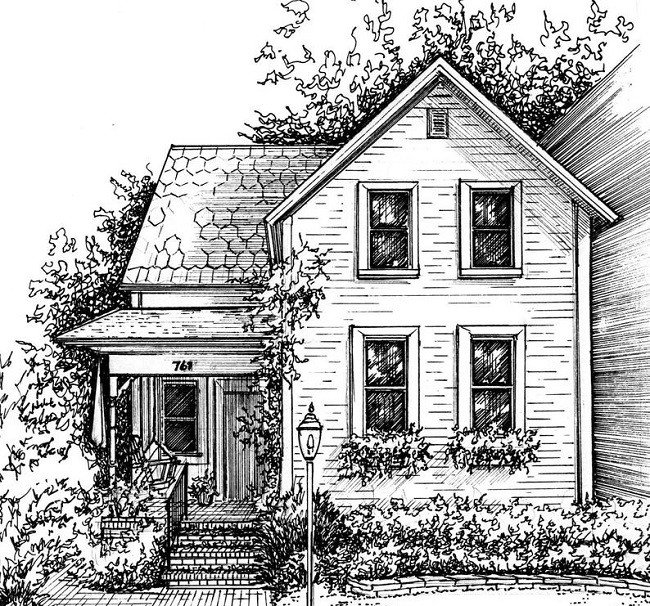 ![Частный дом рисунок карандашом]()
