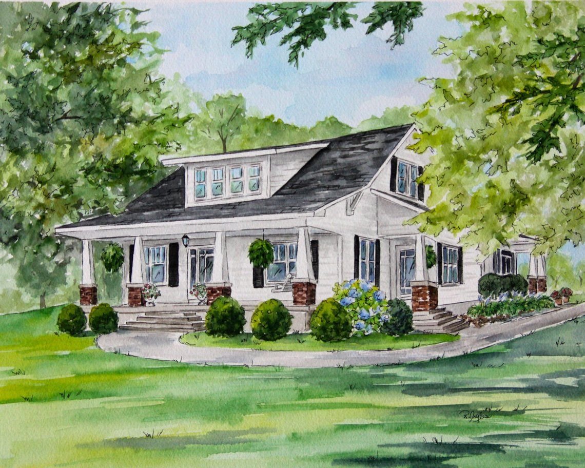 ![Коттедж рисунок акварелью]()