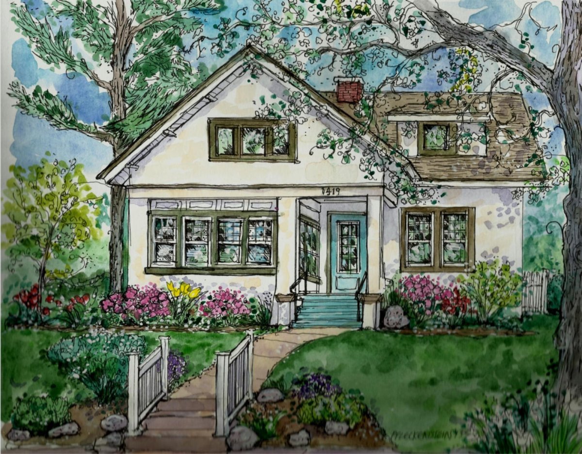 Коттедж рисунок акварелью
